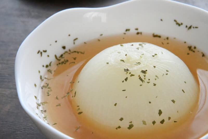 低温調理器でできる野菜料理として注目されているのが、玉ねぎを丸ごと使ったスープです。